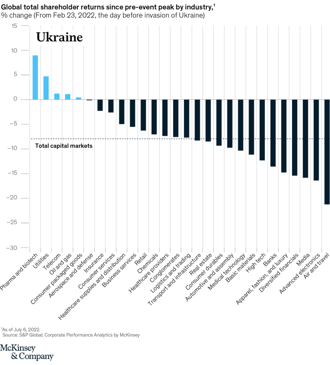 Ninguna crisis es igual a la anterior; Tampoco se puede gestionar de la misma manera. Del mismo modo, ninguna industria se ve afectada de la misma manera en diferentes crisis (Gráfico 2). Con la excepción de la industria farmacéutica, ningún sector mostró rendimientos positivos durante la pandemia y el período más reciente de agitación geopolítica. Además, en la actual confluencia de crisis, la gran mayoría de las empresas han producido rendimientos negativos.