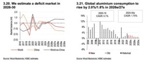 El análisis de HSBC también desmonta una idea relevante: el aluminio ya no depende exclusivamente del ciclo inmobiliario chino.